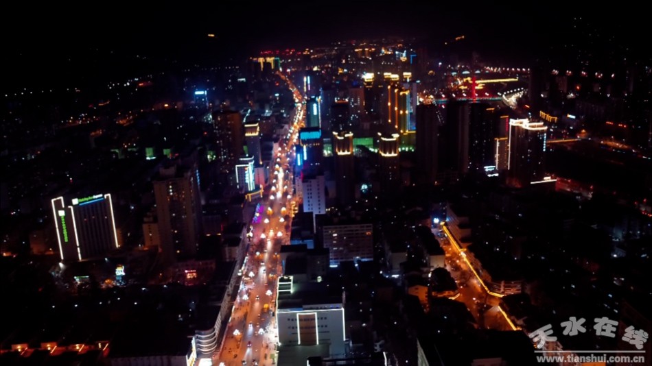 青年南北路、中华东西路、龙城广场、民主路、解放路、滨河路、伏羲城广场等道路两旁的路灯、楼宇亮化交相辉映,盏盏灯火灿若星辰,把每条街道都装饰得色彩缤斓,流光溢彩。