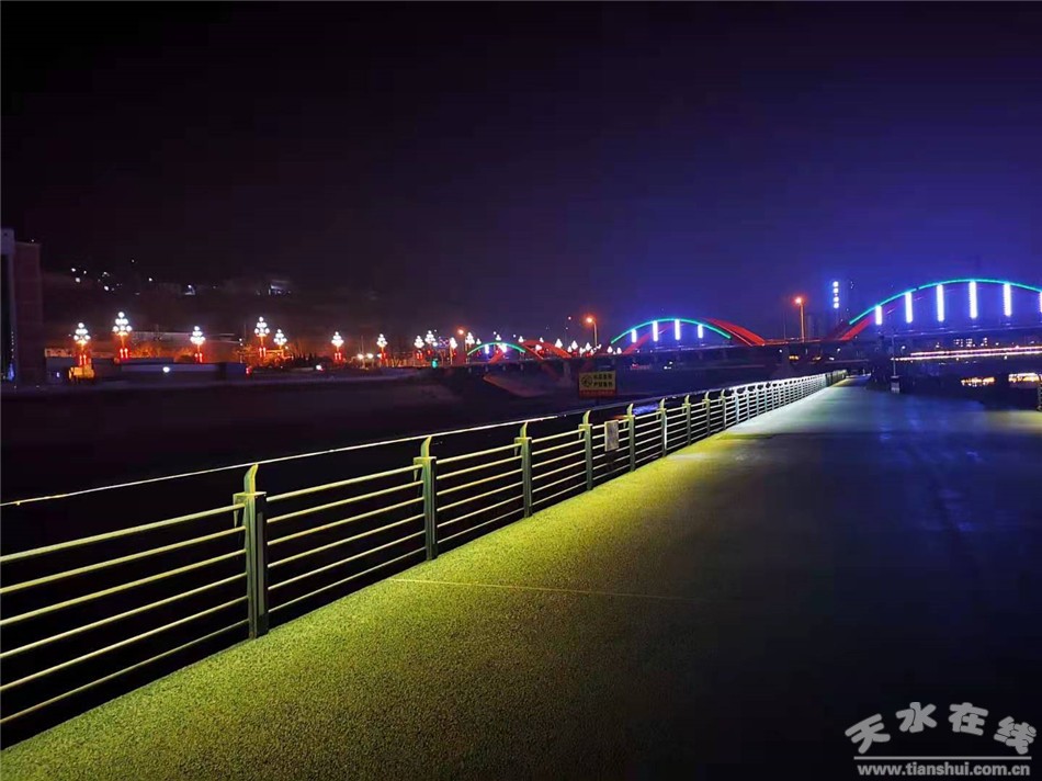 美化亮化工程按照各个城市公共区域不同的特色开展,在伏羲城广场,重点围绕区域景观,以建筑环境为背景,在仿古长廊、街道两旁悬挂大灯笼100个,小灯笼50个,陈设4米高的彩灯花篮2个,6米高的彩灯花篮2个,为市民呈现流光溢彩、华美纷呈的视觉效果。在中华东西路步行街和龙城广场,主干道路两旁和广场周边全部挂起336个灯笼,悬挂1.5米的灯笼14个,向市民表达着新年美好的祝福,公共区域内处处洋溢着浓浓的年味。在天水湖和藉河风情线沿线,维修更换庭院灯、投光灯、高低灯、地灯、台阶灯、线条灯等各类照明等425盏,安装网片亮化灯300平米,LED灯带253米,确保湖区及风情线亮灯率达100%,全方位打造秩序更好、环境更美、形象更佳的天水市城市名片。在成纪儿童公园维修高杆灯、草坪灯、花园投光灯、游乐场地灯等各类路灯100余盏,安装灯笼102套,营造整洁优美、和谐文明、充满生机的公园形象。