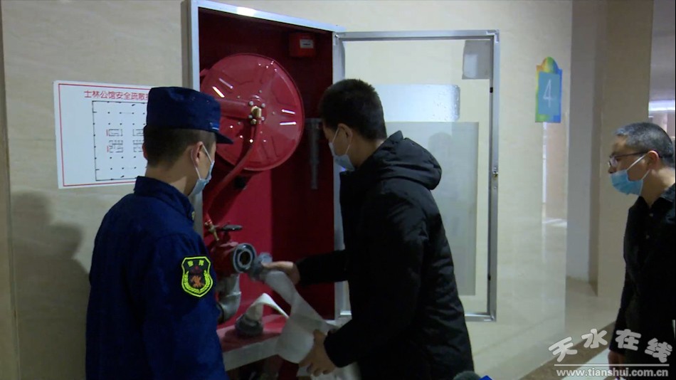 “刚刚他们工作人员使用的过程中,发现对室内消防栓使用操作还不够娴熟。第二个是他们在日常排查检查中,消防栓的栓口有点漏水的问题,可能它里面的垫片,胶皮垫片存在损坏,完了通知他们整改就行了。”天水市秦州区消防救援大队初级专业技术员邢文璟说。