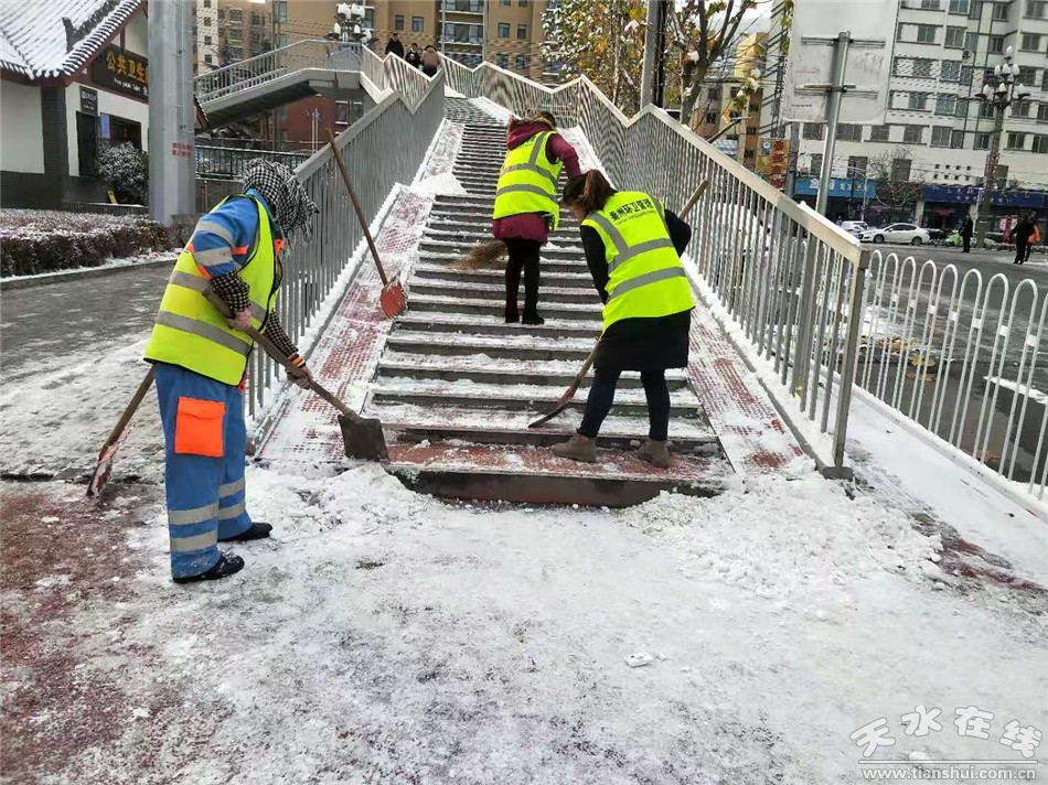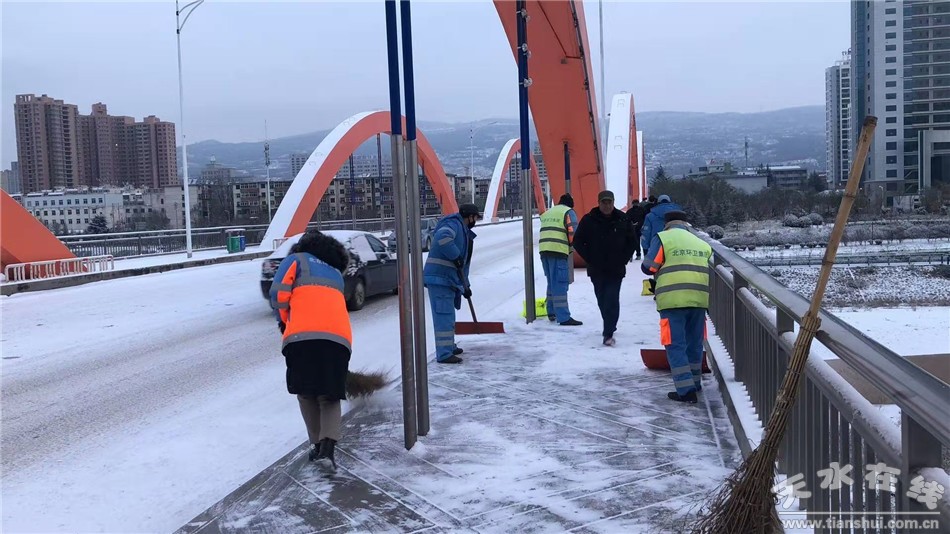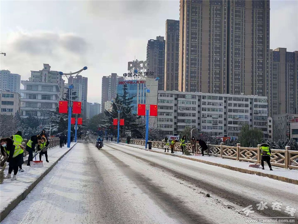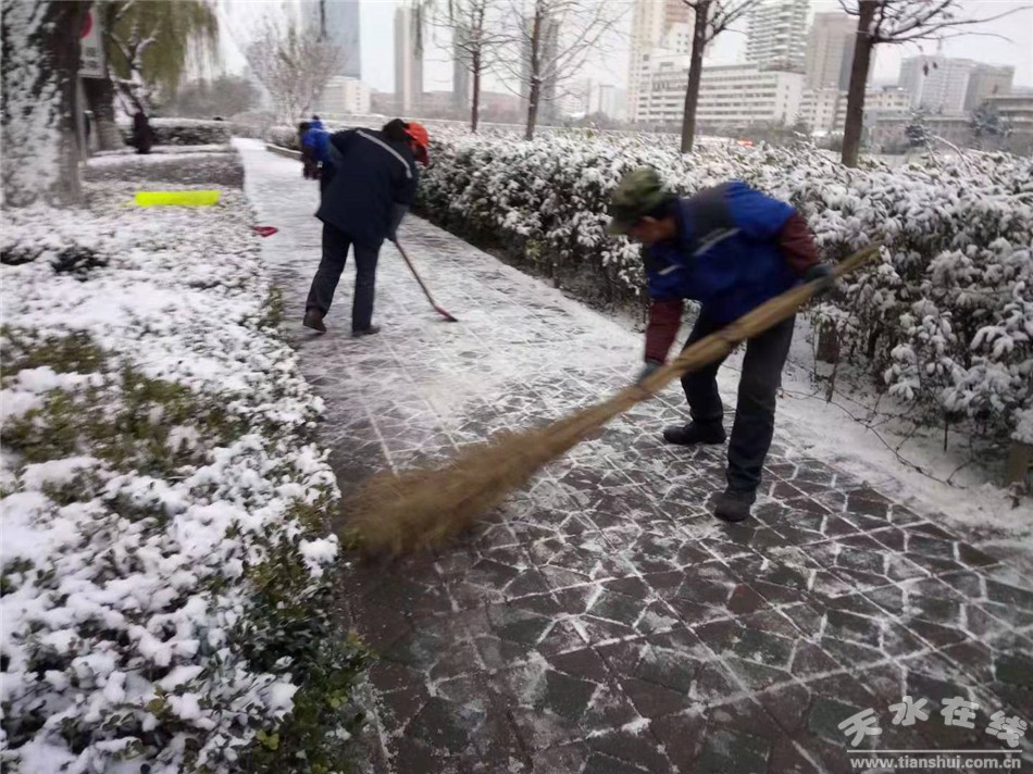 秦州区融媒体中心11月23日讯 11月22日我市普降小雪,受降雪天气和冷空气影响,造成道路结冰,给全市交通安全、生产生活和市民出行带来不便,为了确保道路畅通,保证市民出行安全,11月23日,秦州区环卫治理中心及时启动冬季除雪应急预案,组织京环公司及各辖区所800余名环卫工人,“以雪为令,迅速清除”,充分利用机械设备开展循环清除作业,保障雪天道路畅通。