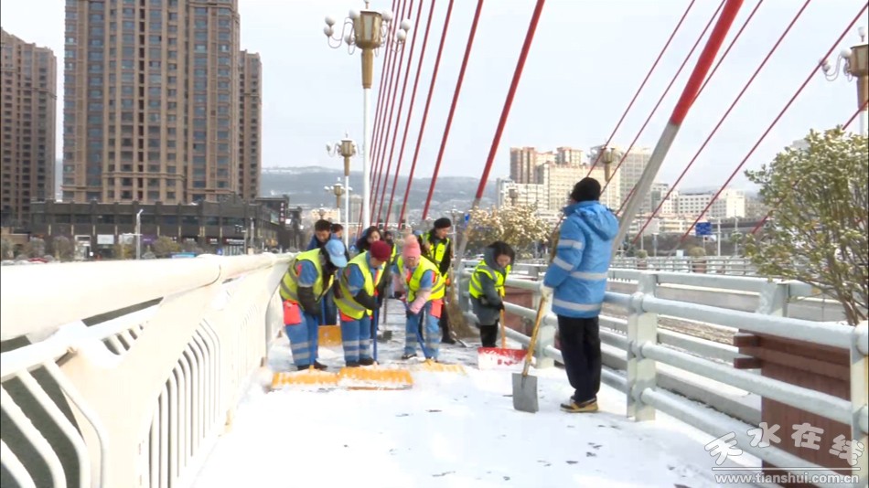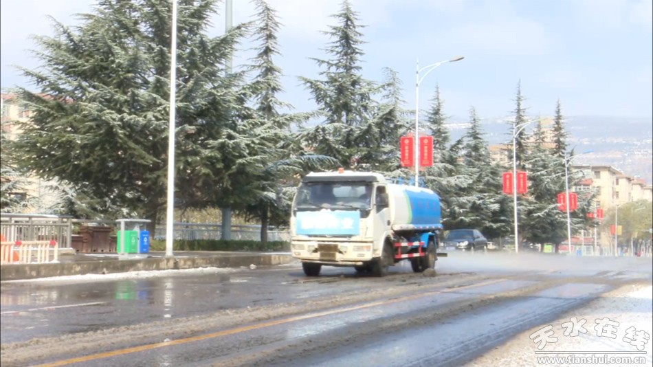 针对此次降雪,秦州区城乡环卫治理中心迅速启动雨雪天气一级预案。在城市主次干道及人流量较大区域,秦州区城乡环卫治理中心采取机械人工互相配合的作业模式,有序展开除雪工作。 “截止今天上午10点,城区主次干道的积雪已经得到了主要清除,全力保障了市民的出行安全。”秦州区城乡环卫治理中心办公室副主任杜兵兵说。
