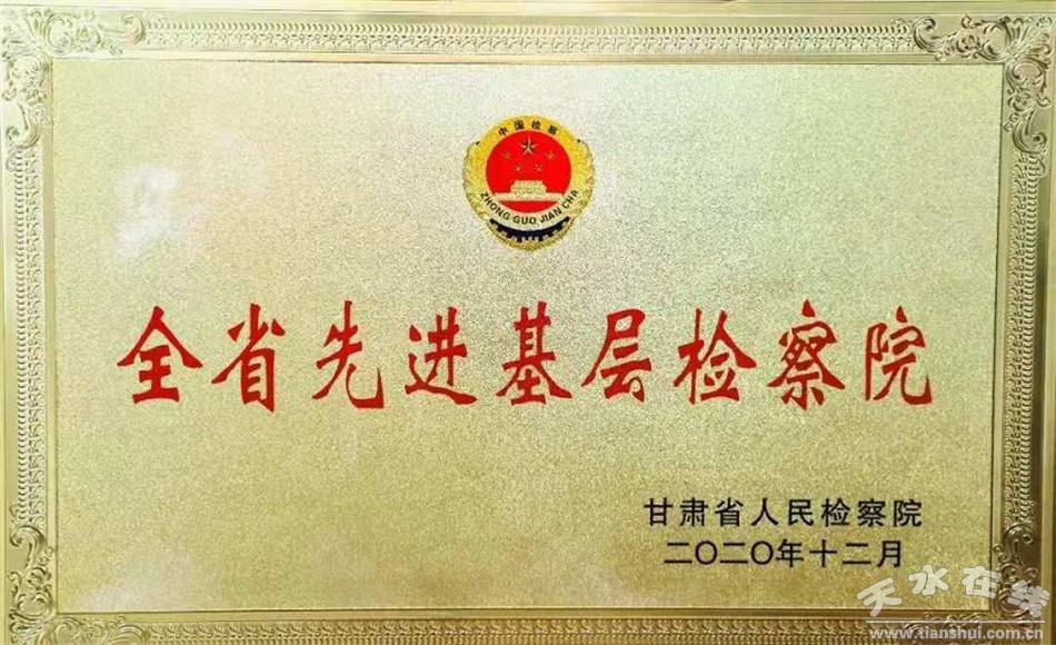 秦州区融媒体中心12月10日讯 12月9日,全省基层检察院建设工作会议暨全省先进基层检察院表彰大会召开,秦州区人民检察院被评“2018-2020年度全省先进基层检察院”。 近年来,秦州区人民检察院深入贯彻“讲政治、顾大局、谋发展、重自强”总要求,不忘初心、砥砺前行,围绕中心大局,聚焦主责主业,在新时代检察工作中取得突出成绩。2018年被评为“全国检察宣传先进单位”,2017、2018、2019连续三年被评为“全省检察应用理论研究组织工作先进单位”,2019年第三检察部被省院记集体二等功一次,7名干警先后获得25次省级以上奖励,2名干警荣立个人二等功。(供稿 秦州区检察院/编辑 靳艳艳) |