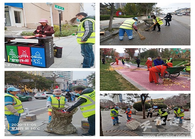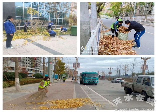 为进一步提升城市精细化管理工作水平,连日来,秦州区城乡环卫治理中心通过落实“四个到位”措施,强化秋冬季作业管理,做好应对秋季大风落叶天气,全力做好落叶清扫工作,确保城市环境卫生质量全面提升。