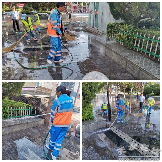 抓好“冲”字,提高冲洗洒水频次。加大对城区49条主干道、24条次干道及7个城市重点公共区域的机扫作业频次、日常机械化洒水力度。同时扩大洗扫的范围,着重对城市人行道、路沿石、绿化带等重点部位进行冲洗。对交通护栏、公共座椅、广告宣传牌等城市家具和果皮箱、环卫工具箱等环卫设施进行深层次冲洗,确保路见本色、城市家具靓丽如新。