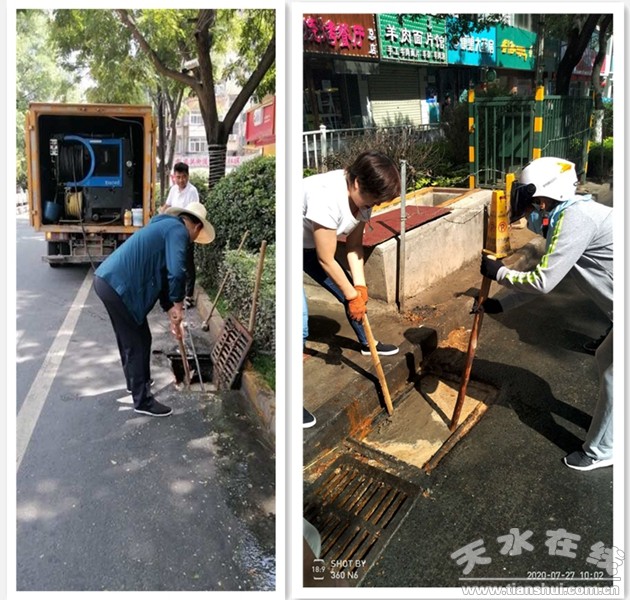 疏浚堵塞管道保畅通。面对强降水等极端天气频发,南方遭受严重洪涝灾害的严峻防汛形势,铆足防患于未然的思想不松懈,持续做好城市排水设施的日常养护疏浚。对城市低洼易涝点、餐饮商铺集中路段、西关居民聚居区域排水管网进行不间断巡查管护,疏通合作南路、解放路、自由路、共和巷等路段排水管网约4600余米、检查井330余座,清掏水箅子1100余个,保障汛期城市排水管网排洪畅通,有效防止污水外溢和“肠梗阻”现象发生。