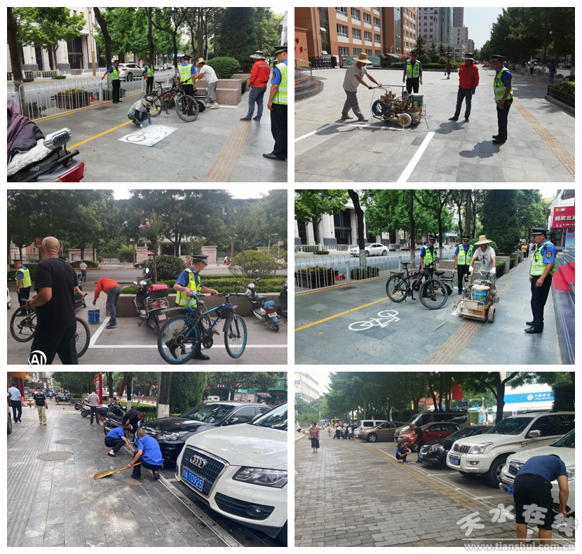 8月8日开始,秦州区执法局对全区的非机动车道、非机动车停放点、机动车停放点等脱落标线进行重新施划。截止目前,施划非机动车道8000米、非机动车停放点55处、机动车停放点17处。积极配合社区、办事处及环卫部门清理整治背街小巷、老旧小区,全面实现点上对表整改、线上对标提升、面上整体推进。