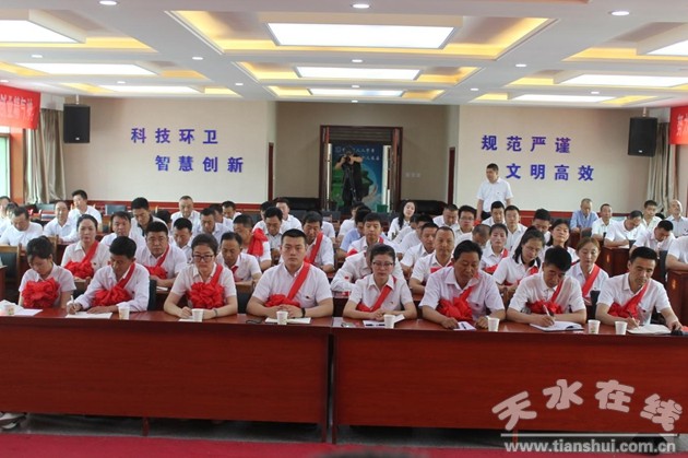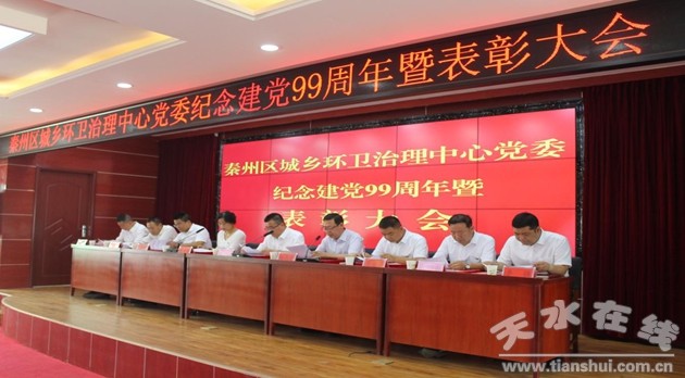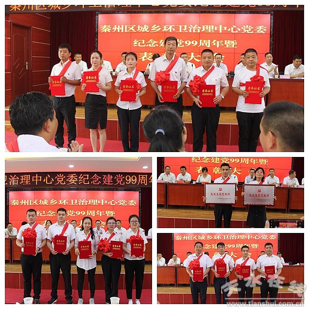 在建党99周年来临之际,为树立典型,表彰先进,进一步增强党组织的凝聚力和战斗力,激发党员干部开拓进取、干事创业的工作热情。6月29日上午秦州区城乡环卫治理中心党委召开纪念建党99周年暨表彰大会。环卫中心领导班子成员,全体党员入党积极分子共计120余人参加会议。
