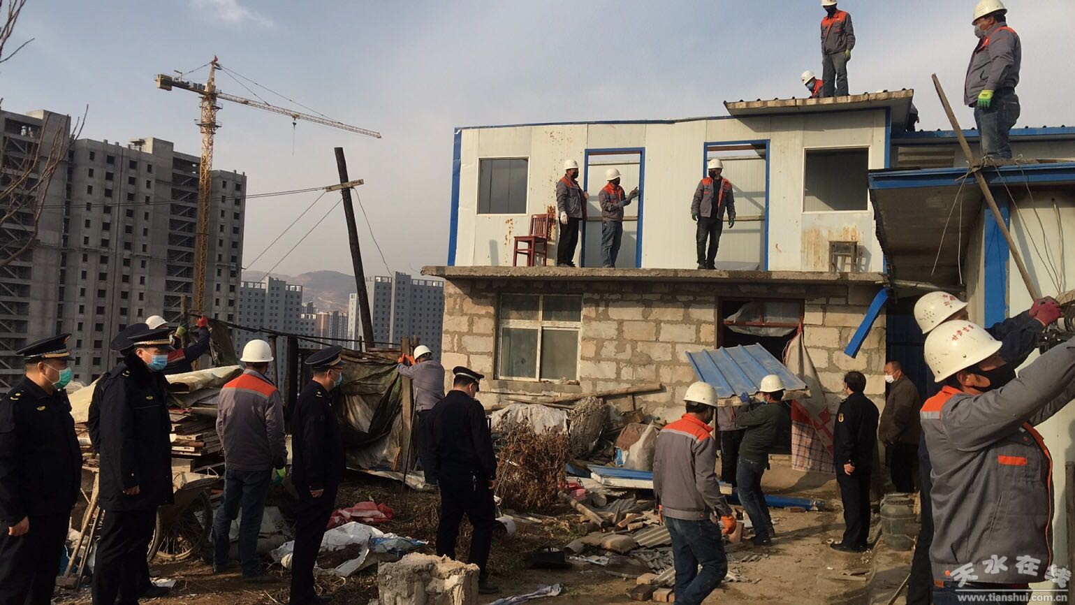 一手抓疫情防控,一手抓生产建设和复工复产。连日来,机场南路及北山生态景观长廊建设现场机械轰鸣、如火如荼,平整场地、拆除违建、恢复耕地以及植树绿化都在热火朝天进行着。秦州区执法局根据区委、区政府统一安排部署,在玉泉镇、自然资源局、卫计局以及公证处等部门的大力配合下,全面开展违法建设的整治工作,彻底清理北山生态景观规划区的各类违法活动板房和临时建筑,为机场南路及北山生态景观长廊建设提供强有力保障。