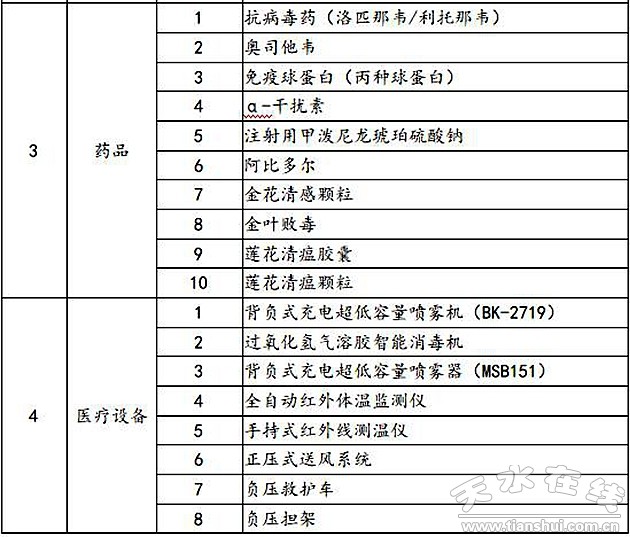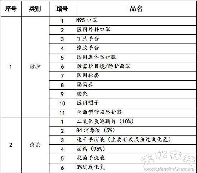 一、疫情防控急需物资名录