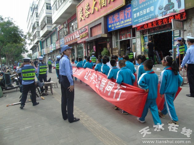 新华门小学和回民小学在校师生3000多人,校园周边安全至关重要,此次活动学校方面高度重视和支持配合,区综合执法局中城中队和城市管理选派干部全程跟踪保障安全。同时,在新华西路城市管理和校园周边环境治理中,选派干部和执法局中城中队干部一道,定思路,想点子,谋对策。在前期对新华西路116家商户集中进行了城市管理法律法规、文明城市创建、园林城市创建、卫生城市创建等方面的宣传教育的基础上,形成了部门联动,人人参与,合力推进,综合治理的工作格局,提出了继续在思想教育上打基础,在转变商户经营习惯上下功夫,在巩固成果上再坚守,在管理水平上再提升的工作思路。此次广大师生参与校园周边环境治理的宣传,体现了城市管理、城市形象需要全社会的广泛参与和支持,创建的成果需要通过社会各界的维护和巩固。通过此活动,广大师生得到了一次以城市管理为主题社会实践活动,对城市管理工作有了进一步的认识和体验,各商户表示将遵守城市管理相关规定,为广大师生创造良好的校园周边环境。