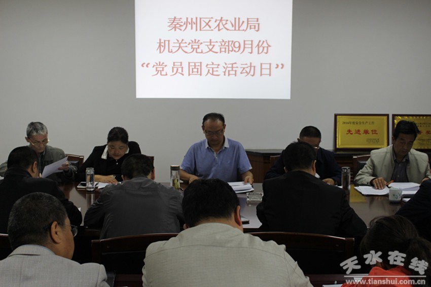 9月1日上午,秦州区农业局机关党支部积极开展9月份“党员固定活动日”,会议由党组书记、局长李逢春同志主持,局党组成员、各股室负责人、局属各单位班子成员和机关支部全体党员共计60余人参加了会议。