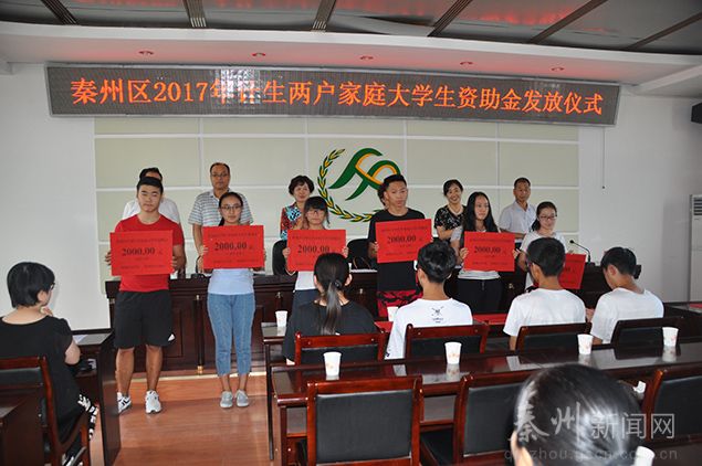 为继续落实好计划生育利益导向惠民政策,帮助独生子女领证户和二女节育户(简称“两户”)困难家庭大学生子女圆梦大学校园,8月9日下午,秦州区举行2017年度“两户”大学生资助金发放仪式。区委常委、宣传部长曹亚玲、区人大副主任崔丽霞、区政协副主席郭金霞出席了发放仪式,受到资助的一本以上院校独生子女困难家庭大学生、7个街道计生办主任以及部分大学生家长约60多人参加。