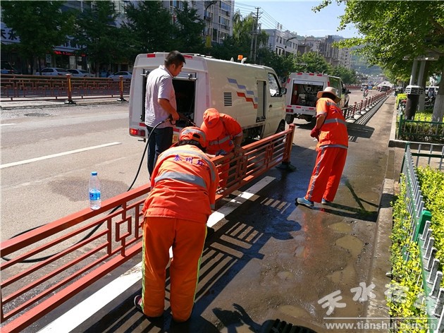 针对近期天气炎热情况,秦州区环卫局通过调整作业时间、改变作业方式、加大机械化作业强度、加大环卫对外管理等方式最大限度保证环卫工人在高温天气下的作业安全。一是调整环卫工人作业时间,大扫在清晨6点前完成,在其余时间进行巡回保洁,减少了高温时段的作业时间,缩短一次性连续作业时间。二是对主次干道实施地毯式吸尘、人机结合清洗、机械化清扫、精细化保洁、高空抑尘、调度洒水“六位一体”的作业措施,每天早6:00—晚11:00对城市道路实施循环不间断洒水降尘、喷淋抑尘,加大了机械化清扫和洒水频次,在高温时段主要以机械化清扫保洁为主。三是充分发挥管理员网格化管理作用,对各类破坏环境卫生的行为加强管理,对门店、摊点、车辆随意丢弃垃圾、路边洗车污染路面,校园周边存在的乱丢、乱扔、乱堆垃圾等现象,依据环卫法律法规进行严肃处理,最大限度减少环卫工人的劳动量。四是通过为每名环卫工人发放矿泉水,在环卫工人休息室提供充足的纯净水,为环卫工人讲解防暑降温安全知识和注意事项,提高环卫工人自我防护意识,保障一线环卫工人高温作业安全。