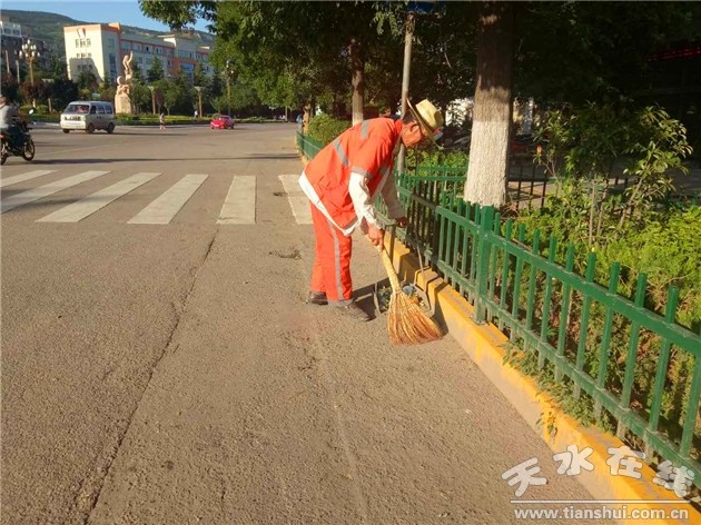 2017年伏羲文化旅游节已经结束,为保障“节会”之后,城市环境卫生质量不下降,秦州环卫工人们没有因炎热而懈怠,而是投入了更大的干劲,全力克服高温天气带来的困难,拿着扫帚和簸箕,穿梭在城市的大街小巷,一丝不苟地进行巡回保洁,用辛勤劳动和“愿吃千般苦,甘为万家洁”的奉献精神,保障着城市环境卫生的干净整洁。