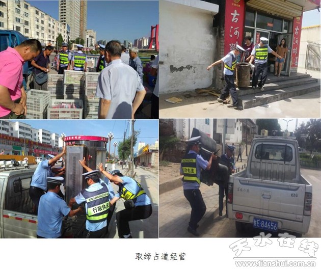 2017年以来,秦州区委区政府以创建国家园林城市、全国文明城市为主线,持续发力,精准整治,总体推进,强力提升市容秩序整治、交通秩序整治、园林绿化、大气污染防治、违章建设管控工作力度。第28届伏羲文化旅游节过后,随着樱桃、桃子等旺季水果的上市,天气转热,摊点的急剧增加、夜间施工等城市“八乱”问题略有反弹。区委区政府近期安排城管、环保、环卫、食药监、工商、交警、市场管理处等职能部门联合执法,全城治理,重点整治,难点攻坚,确保整治工作见实效,求实绩,为全市人民创造一个干净整洁有序、宜居宜业宜游的城市环境。