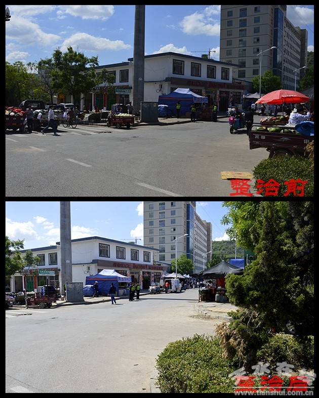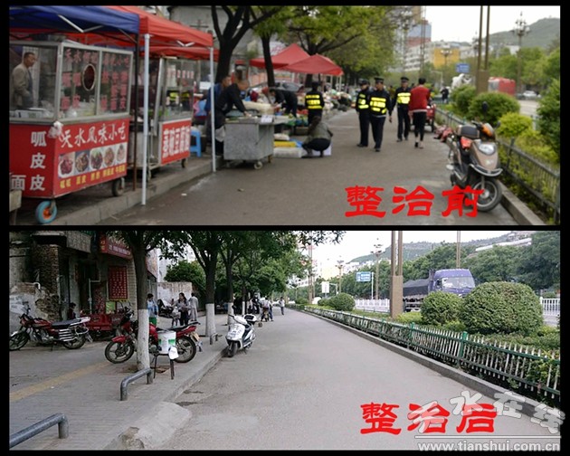 天水郡中队针对辖区特点,就近修建便民市场1处,市场已投入使用之中,共安置摊点65家,取缔了莲亭及四中周边的马路市场,还路于民,卫生环境明显改观。