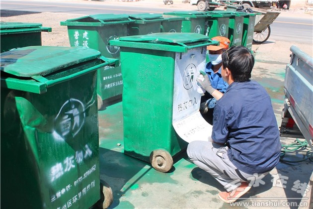 为贯彻落实市区创建全国文明城市动员大会精神,迎接2017(丁酉)年公祭伏羲大典暨第28届伏羲文化旅游节的到来,营造良好的“节会”氛围,为全国游客展示我市干净整洁、靓丽温馨、文明有序的城市形象,连日来,秦州区城乡环卫局积极部署、抢抓时间,大力开展垃圾收集桶、果皮箱、手推车等环卫设施的油饰更换、喷绘标语等工作。