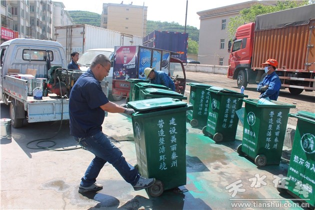 秦州区城乡环卫局对民主路、建设路、合作路、新华路等范围内破损、掉漆、被破坏的700余个果皮箱,300余个手推车以及400余个公共点的垃圾收集桶进行了维修、重新喷漆和喷绘宣传标语,后期将陆续对全城区所有的果皮箱和手推车进行油饰亮化,整个环卫设施更新安装、油饰亮化工程将于6月15日前全部完工。