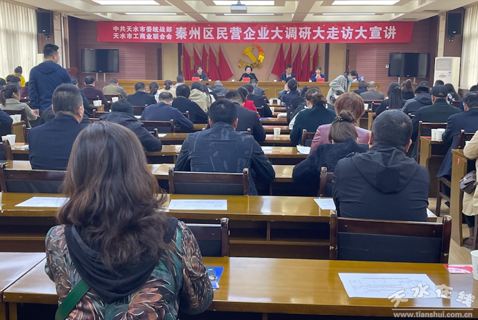 秦州区融媒体中心4月8日讯 (记者 张丹阳)为助推民营企业高质量发展,4月7日,民营企业大调研大走访大宣讲活动在秦州区开展,市委统战部副部长曹兴强,区委常委、区委统战部部长刘睿智参加活动。