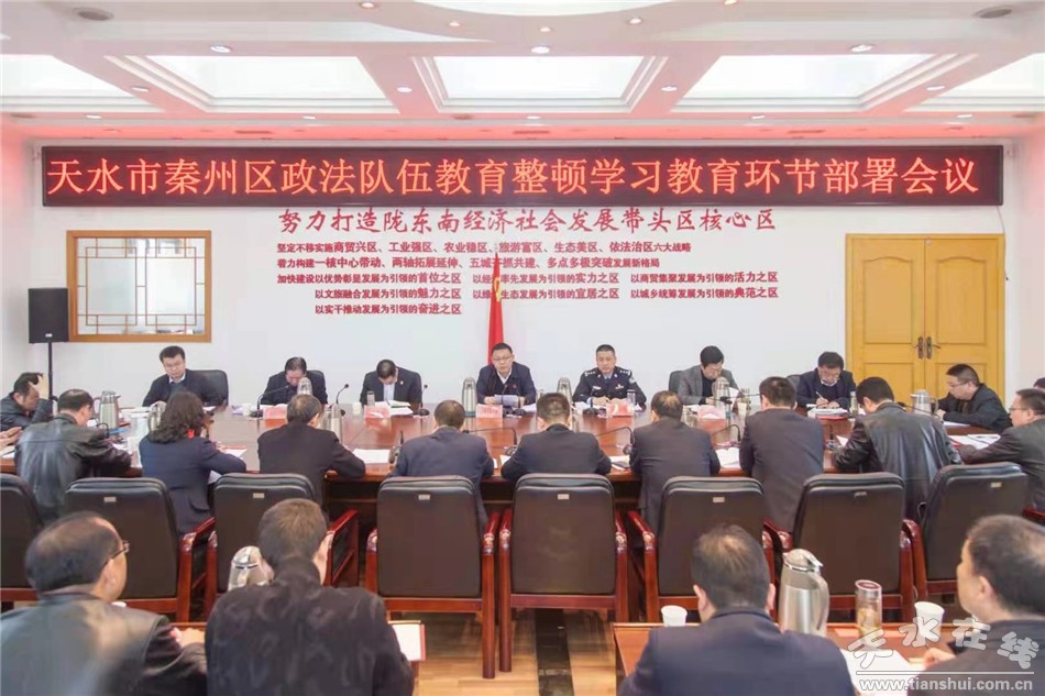 会议传达学习了全市政法队伍教育整顿学习教育环节部署会议主要精神,宣读了《关于印发天水市秦州区政法队伍教育整顿学习教育环节实施方案的通知》。