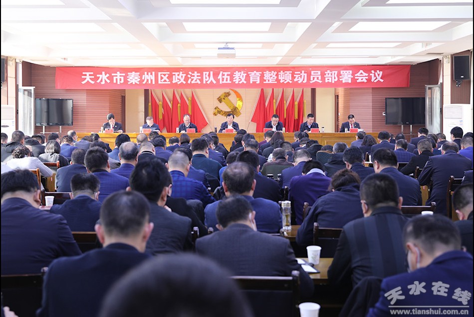秦州区融媒体中心3月10日讯 (记者 魏朝辉 杨旭)3月9日,秦州区召开政法队伍教育整顿动员部署会议,深入学习贯彻中央和省、市政法队伍教育整顿动员部署会议精神,安排部署我区政法队伍教育整顿工作。市委常委、区委书记、区政法队伍教育整顿领导小组组长雷鸣出席会议并讲话。他强调,要以最鲜明、最坚决的态度开展教育整顿,以最精准、最有力的举措推进教育整顿,以最管用、最过硬的成果促进队伍建设,为建设更高水平的平安秦州、法治秦州提供坚强组织保证,以优异成绩迎接建党100周年。