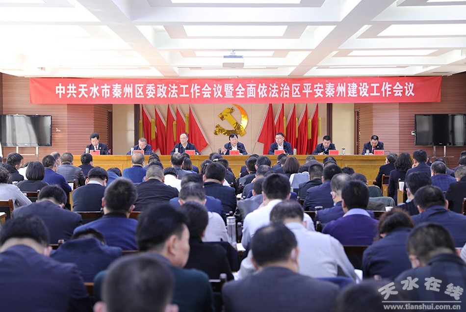 秦州区融媒体中心3月10日讯 (记者 魏朝辉 杨旭)3月9日,秦州区委政法工作会议暨全面依法治区、平安秦州建设工作会议召开。市委常委、区委书记雷鸣出席会议并讲话。他强调,要全面贯彻党的十九大和十九届二中、三中、四中、五中全会精神,认真贯彻习近平法治思想和习近平总书记重要指示精神,以强烈的事业心和责任感,把握新要求,担当新责任,应对新挑战,锐意进取、真抓实干,为建设幸福美好新秦州作出新的贡献,以优异成绩庆祝建党100周年。