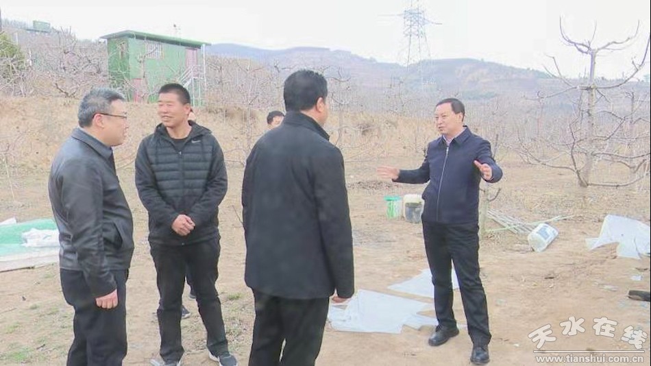 秦州区融媒体中心3月5日讯 (记者 高世飞)3月4日,秦州区委副书记裴贵军带领区农业农村局、玉泉镇等单位负责人就全区春季果园管理建设工作进行调研。