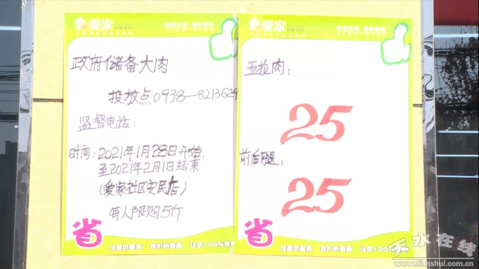 “七点十分开始卖,买肉的人多,都是这附近的居民,这两天销售1500斤左右,前两天比较多一点,前两天是五六千斤左右,基本上大家都能接受,还满意,比市场每斤要低两元多。”秦州区安民点爱家超市销售人员宋芳芳说。