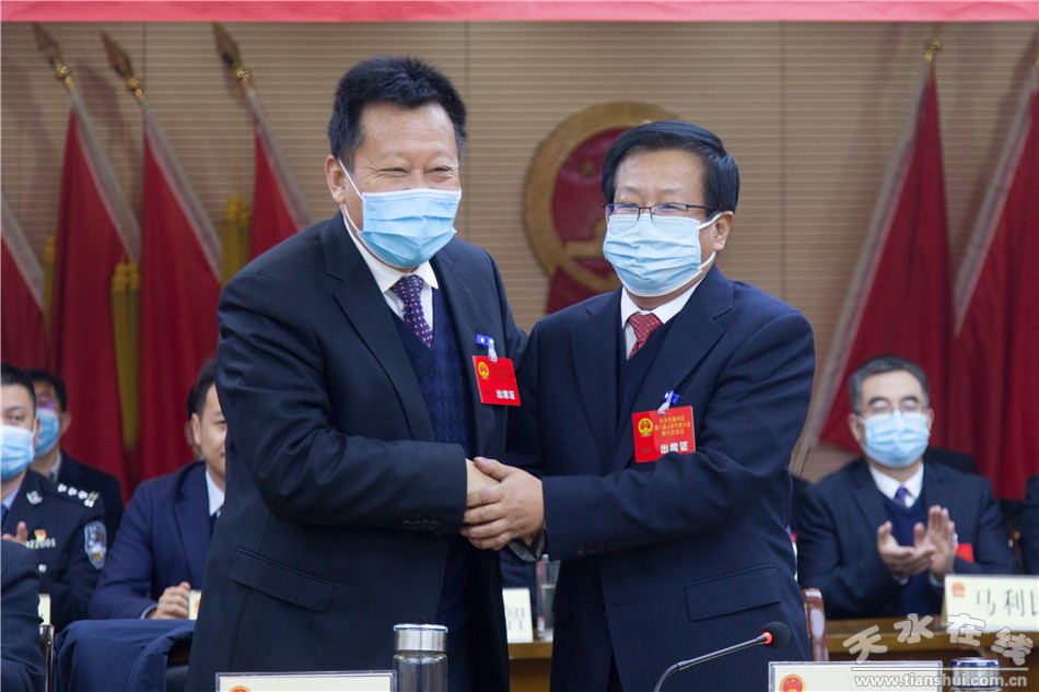 新当选的天水市秦州区第八届人民代表大会常务委员会主任魏胜奎同志作了表态发言。
