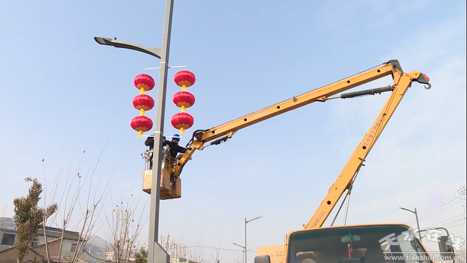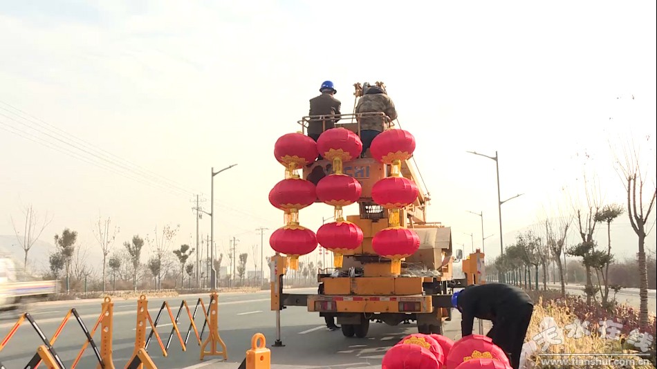 上午9时许,记者在秦州大道看到,工人们正在为沿线路灯上悬挂灯笼。从1月18日起,秦州区市政设施事务服务中心组织工作人员分片包段,加班加点进行亮化作业。