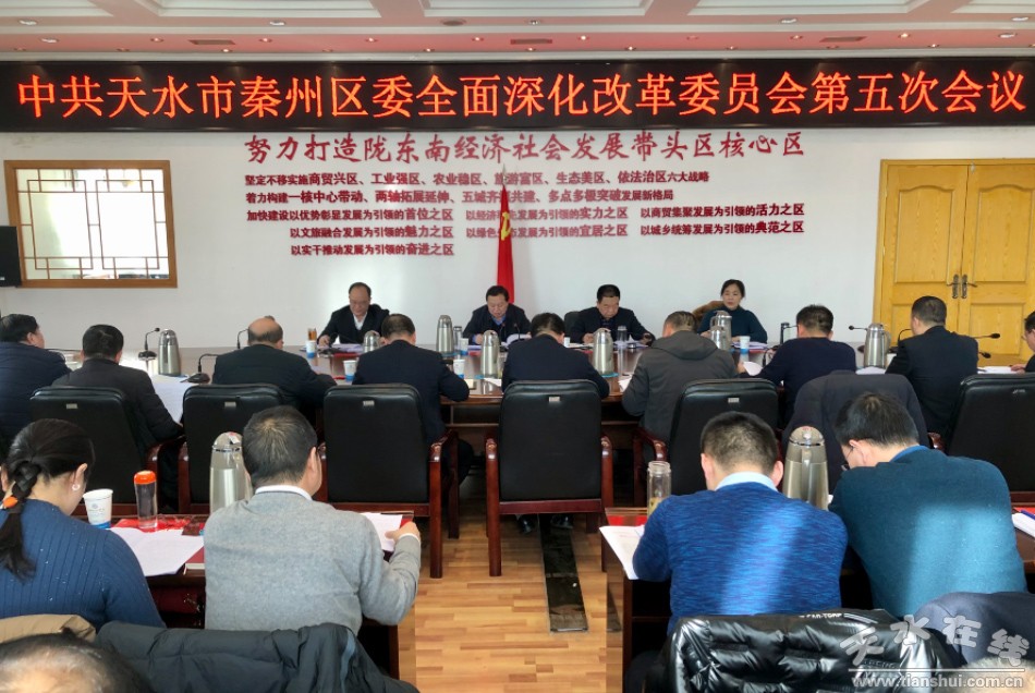 秦州区融媒体中心12月30日讯(记者 赵雅琪 )12月30日,秦州区召开全面深化改革委员会第五次会议,区委副书记裴贵军主持会议并讲话。