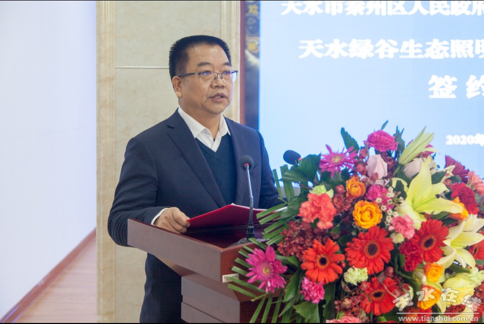 区委常委、常务副区长赵虎生在致辞中说,近年来,秦州区始终把重大项目引进作为促进全区经济社会高质量发展的主要举措,牢固树立“招大引强”的工作理念,海纳百川引项目,开放包容求合作,形成了大力度招商引资、广领域对外合作的浓厚氛围。今天项目的签约,标志着天水绿谷生态照明产业孵化基地项目迈出了实质性的关键一步。项目的建设,对于培植优势工业资源、启动发展新型节能产业、培育新的税源渠道、延伸拉长工业产业链条具有十分重要的意义。下一步,秦州区将进一步优化营商环境,强化服务意识,为项目建设开通“绿色通道”,提供“店小二”服务,切实解决各种实际困难和问题,确保项目有效推进。希望项目合作双方抢抓机遇,信诺重约,推动项目尽快开工建设、投产达标。