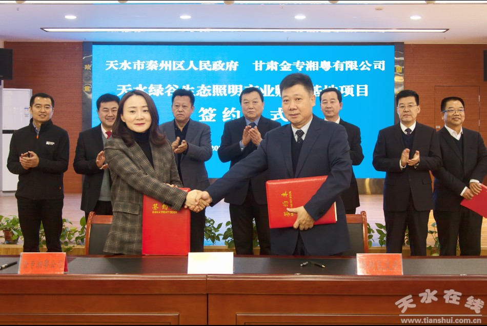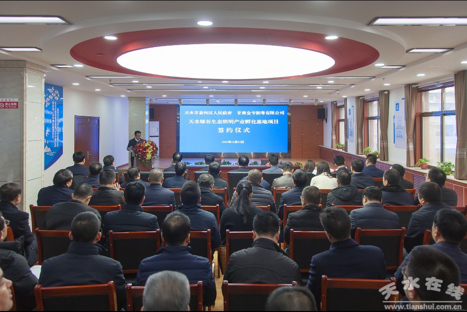 秦州区融媒体中心12月12日讯(记者 魏朝辉 摄影 刘可)12月12日,天水市秦州区政府与甘肃金专湘粤产业园发展有限公司成功签约天水绿谷生态照明产业孵化基地项目。