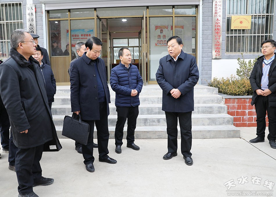 (在太京镇庞家沟村调研) 秦州区融媒体中心12月19日讯(记者 魏朝辉 杨旭)12月18日,市委常委、秦州区委书记雷鸣带领相关部门负责人,深入村、社区,督查调研“两委”换届工作。他强调,要认真贯彻落实中央和省、市、区换届工作部署要求,抓细抓实重点步骤及关键环节,高标准、高质量、高水平组织好“两委”换届工作,确保选出好班子、换出新气象、激发新活力,为奋斗“十四五”,实施乡村振兴战略、提升基层治理水平提供坚强组织保证。