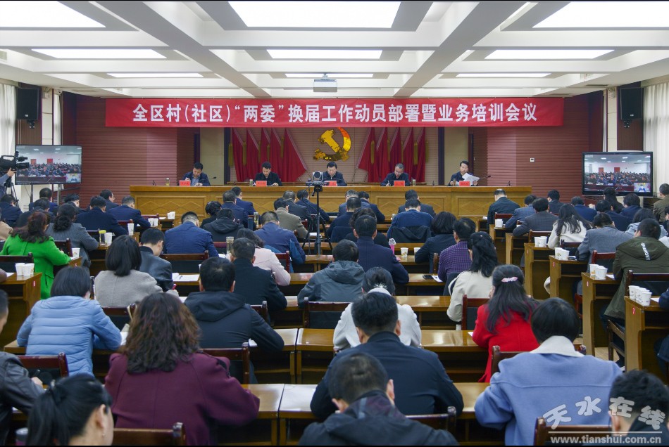 秦州区融媒体中心11月17日讯 (记者 杨旭 摄影 刘可)11月16日,秦州区召开村(社区)“两委”换届工作动员部署会议。市委常委、秦州区委书记雷鸣出席会议并讲话。他强调,全区上下要认真学习贯彻习近平总书记关于农村和城市基层党建工作重要指示精神,切实把思想和行动统一到中央和省、市、区委的决策部署上来,以高度的政治责任感,精心组织好换届工作,为决胜脱贫攻坚、接续推进乡村振兴、建设幸福美好新秦州提供坚强的组织保证。 区委常委、组织部部长王刚主持会议。区领导张恒刚、张维有、唐秀成参加会议。 会议传达了中央和省、市村(社区)“两委”换届工作电视电话会议精神。