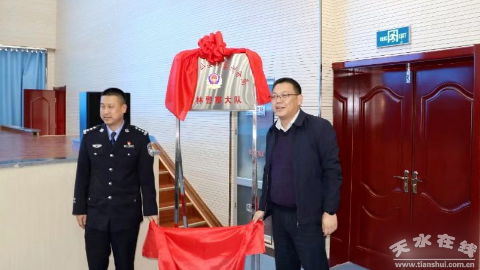 秦州区融媒体中心11月6日讯(记者 裴鹏霞)11月5日,天水市公安局秦州分局举行森林警察大队转隶揭牌仪式。市公安局森林分局政委许旺富、副区长马小军出席揭牌仪式,区委常委、政法委书记何炜巍主持揭牌仪式。