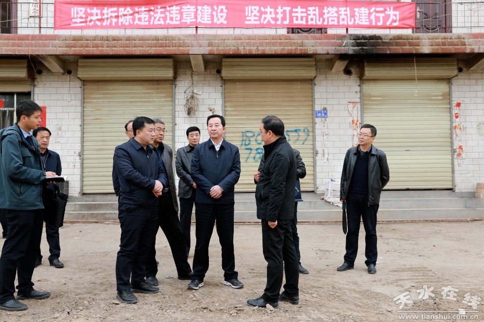 孟晓龙一行先后来到太京镇师家崖棚改项目、李家台子土地征收现场、天水江南市场片区、藉口镇四十铺村违法占地清理整治、天水职教园片区土地征收区域、西十里片区棚户区改造和天水世茂国际生态城项目房屋征收现场等地,重点就项目建设进度、土地征收丈量及征收款支付、项目区域电力杆线迁建、乱占耕地违法建设清理整治、加快房屋征收进度等重点工作进行了再部署。