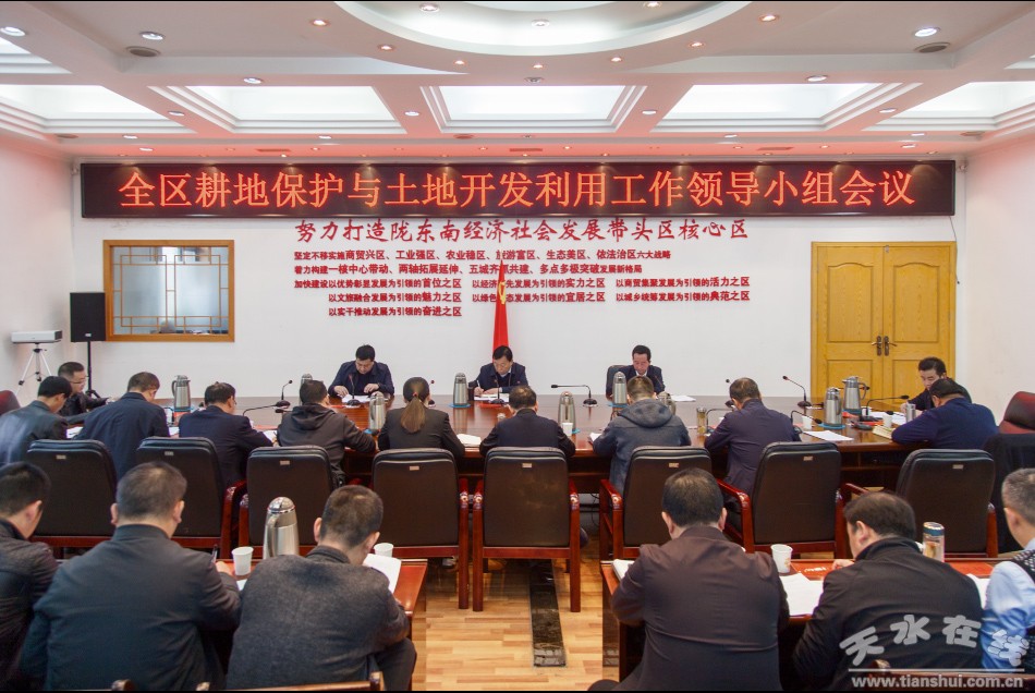 秦州区融媒体中心11月5日讯 (记者 杨旭 摄影 刘可)11月4日,秦州区召开耕地保护和开发利用工作领导小组会议。市委常委、秦州区委书记、区耕地保护与土地开发利用工作领导小组组长雷鸣出席会议并讲话。他强调,要深入学习贯彻习近平总书记关于耕地保护和粮食安全的重要论述,树牢“红线”意识、强化保护力度,严格履行责任,严守政策法规,全力以赴做好耕地保护和土地节约集约利用各项工作。 区委副书记、区长、区耕地保护与土地开发利用工作领导小组组长孟晓龙主持会议。区委常委、常务副区长赵虎生参加会议。 会议传达了省市相关会议精神,秦州区自然资源分局通报了全区土地违法违规问题整改、农村乱占耕地建房清查整治和村庄规划编制情况。