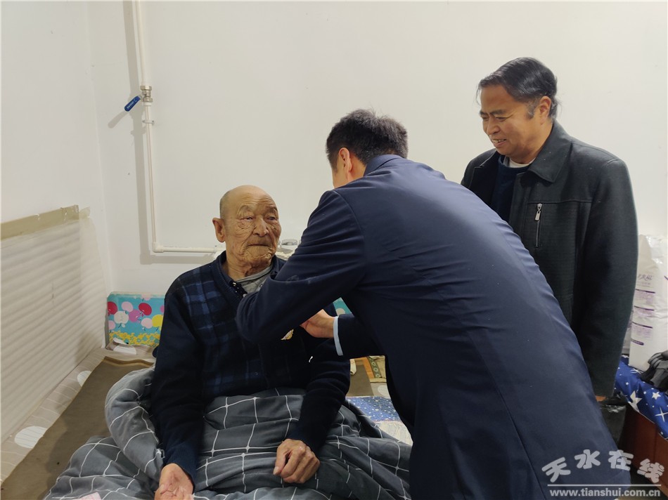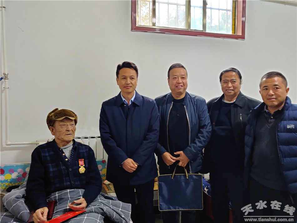 秦州区融媒体中心10月28日讯 10月27日上午,秦州区委常委、玉泉镇党委书记张恒刚一行走访慰问抗美援朝老兵齐国良及家属,并将“中国人民志愿军抗美援朝出国作战70周年”纪念章送到他们手中。