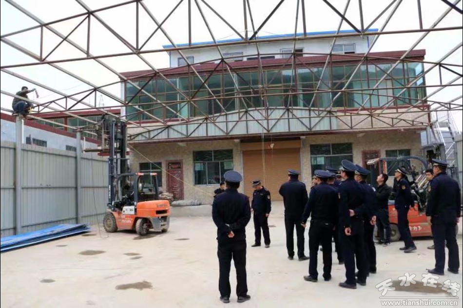 “出动执法人员230余人,大型拆除机械3台,对藉口镇违法建筑进行拆除,拆除面积约4.8万平方米,预计10月底全部拆除完毕。”秦州区综合执法局副局长王文强说。
