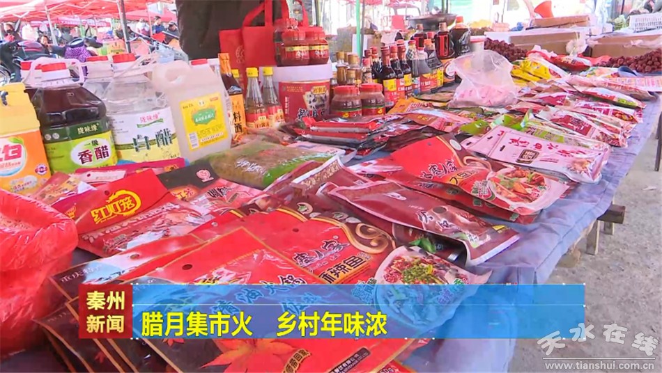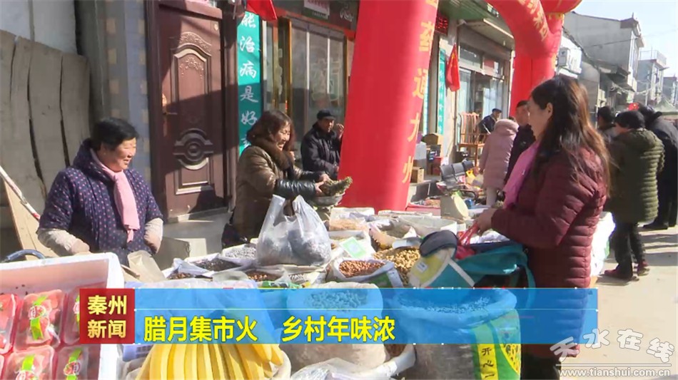 每逢农历的三六九之日,秦州区天水镇的集市就格外热闹。晌午时分,商家们早早就从四面八方汇聚而来。临近春节,糖果、日用品、特色小吃、蔬菜、服饰,各类商品琳琅满目、一应俱全。前来赶集的村民们穿梭其中,一边选购、一边话家常,小小的集贸市场显得格外热闹。