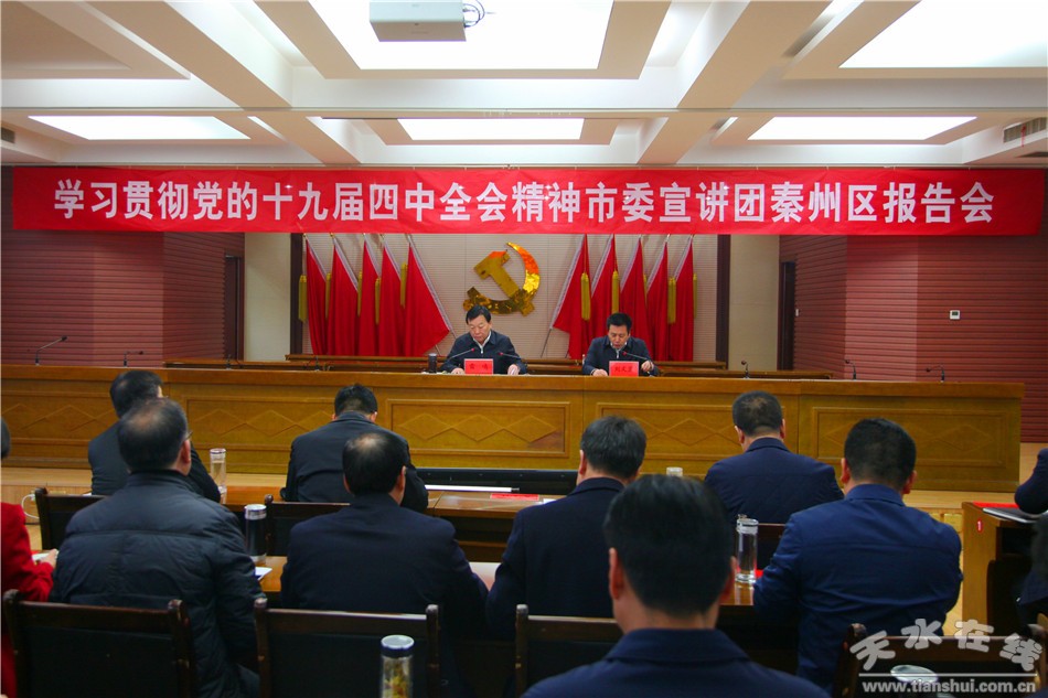 党的十九届四中全会精神市委宣讲团秦州区报告会举行 雷鸣作报告 刘文玺主持