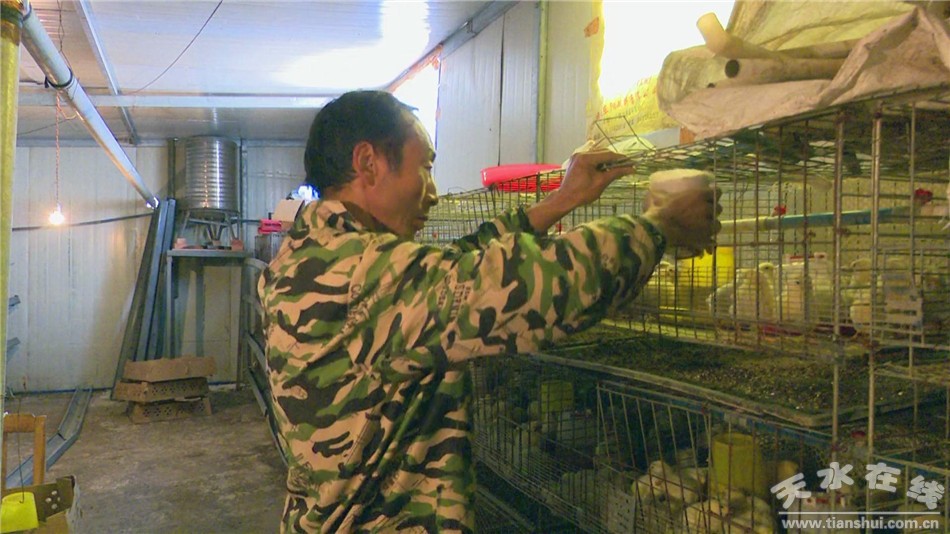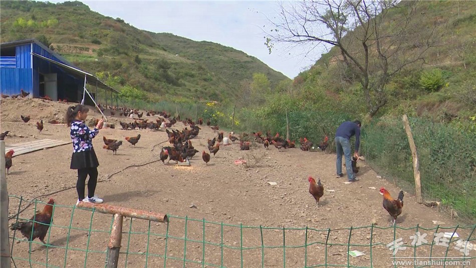 在汪川镇银河村陈新灵的家庭农场内,搅拌玉米的声音打破了山林的寂静,成百上千只跑山鸡聚集在陈新灵身边,争抢啄食他投喂的玉米粒。陈新灵对记者说,银河村是秦州区距离城区最远的村子,山大沟深,属于深度贫困村,不甘贫困的他一心想要通过自己的努力让家人过上好日子。