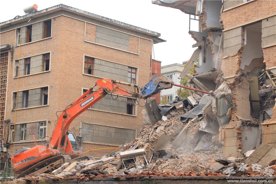 秦州区融媒体中心10月31日讯 为加快信号厂片区二期房屋征收工作进度,保障天水郡片区安置房建设项目顺利实施,10月29日至30日,由秦州区房屋征收、综合执法等相关部门组织人员对天水郡信号厂项目已完成房屋征收工作的6#楼实施整体拆除。