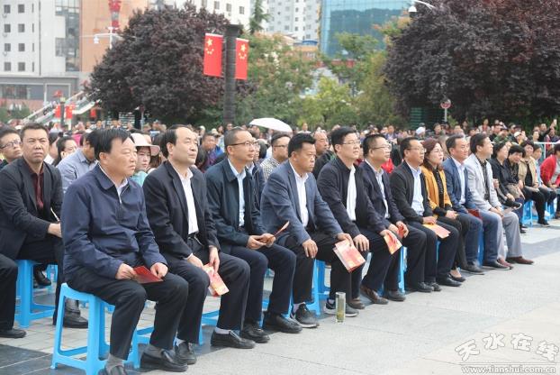 9月27日,由秦州区委统战部主办的“同心同行七十年、携手共进谱华章”秦州区统一战线庆祝中华人民共和国成立70周年文艺汇演在龙城广场举行。市委常委、秦州区委书记雷鸣,市人大常委会副主任安志宏、王晓琴,副市长董小平,秦州区人大常委会主任宋丕林,区政协主席毛更生观看了文艺汇演。