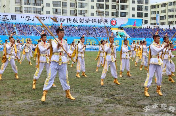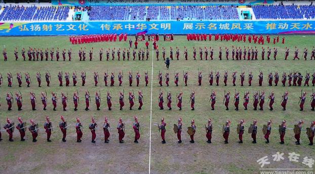 9月12日上午,第五届天水秦州“李广杯”国际传统射箭锦标赛开幕式在南山体育场隆重举行。一场盛大绚丽的文体表演,将传统元素与现代元素有机结合,全方位展现了秦州区丰富灿烂的历史文化和蓬勃发展的体育事业。恢宏大气的文体表演不仅为赛事增添异彩,也为中华人民共和国成立70周年献礼。