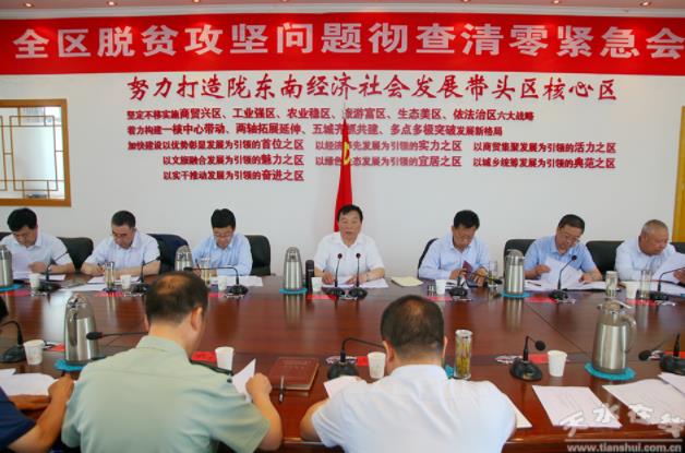 秦州区融媒体中心6月22日讯(记者魏朝辉杨文慧)6月21日,市委常委、秦州区委书记雷鸣主持召开脱贫攻坚问题彻查清零会议,传达省市领导批示及相关文件、会议精神,安排部署秦州区工作。他强调,要坚持问题导向,聚焦目标任务,扛责任、抓清零、转作风,纵向到底、横向到边,逐一对照检查,逐项核查验收,凝心聚力,推动脱贫攻坚问题彻查整改工作任务清零、筛查清零、核查清零。