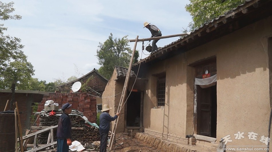 住房安全是关乎群众居住生活条件的硬性指标,也是脱贫攻坚的重点工作。在房屋改造过程中,平南镇通过采取农户自建、自行加固维修、置换、村干部帮助群众修建等方式,着力改善村民的住房问题。由于个别群众家里困难,缺劳动力也缺资金,镇村干部主动承担起困难户的房屋修建工作,利用有限的资金,发动群众投工投劳,义务为困难户修建房屋。这天,顾店村正组织群众为70岁的独居老人顾见盈修缮房屋。