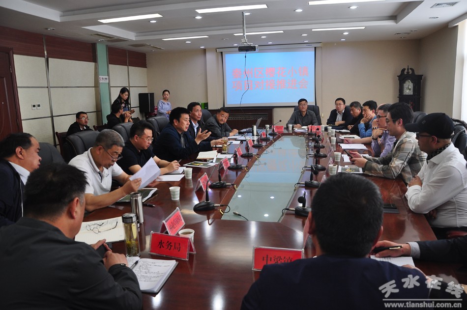 秦州区融媒体中心5月28日讯(记者 张继明)5月28日,区委副书记、区长刘文玺主持召开“樱花小镇”项目对接推进会,就项目推进中的具体问题和广州天适集团进行了深入对接座谈。天适集团董事长何宗儒参加推进会。