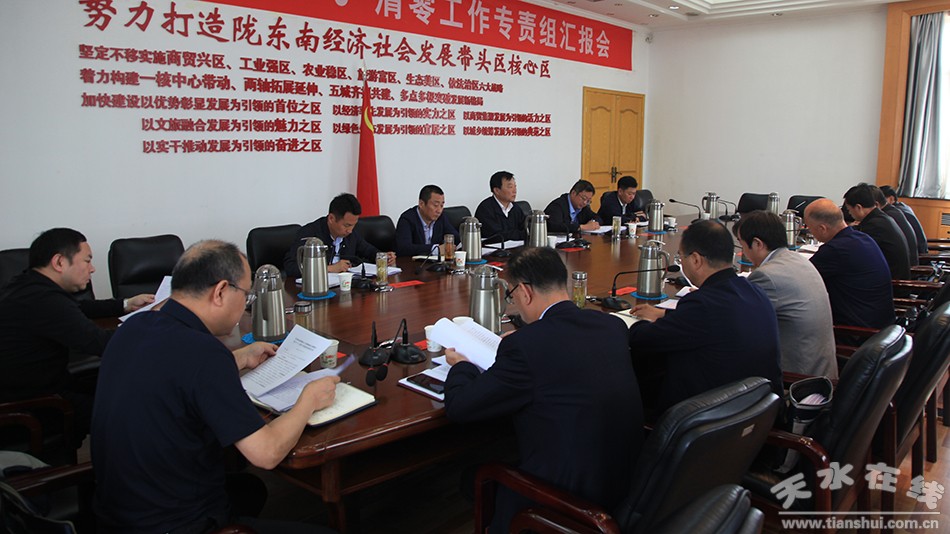 秦州区融媒体中心5月31日讯 (记者杨旭)5月31日,市委常委、秦州区委书记雷鸣主持召开脱贫攻坚专责组工作汇报会。他强调,要深入学习贯彻习近平总书记关于扶贫工作的一系列重要论述,坚定必胜信心,以流几身汗、脱几层皮、掉几斤肉的责任担当,集中时间精力,加快工作节奏,继续做好脱贫攻坚各项硬件建设,确保如期实现整区脱贫“摘帽”。